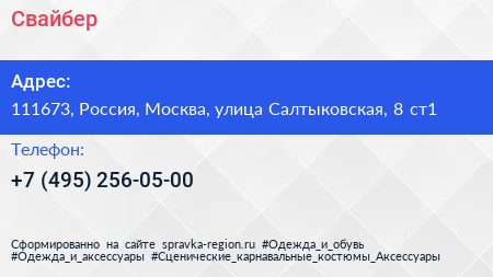 Свайбер по адресу 111673, Россия, Москва, улица Салтыковская, 8 ст1 в дальнейшем Организация, размещена в следующих категориях: