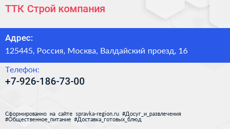 ТТК Строй, компания по адресу 125445, Россия, Москва, Валдайский проезд, 16 в дальнейшем Организация, размещена в следующих категориях: