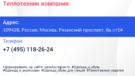Теплотехник, компания по адресу 109428, Россия, Москва, Рязанский проспект, 8а ст14 в дальнейшем Организация, размещена в следующих категориях: