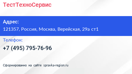 ТестТехноСервис по адресу 121357, Россия, Москва, Верейская, 29а ст1 в дальнейшем Организация, размещена в следующих категориях: