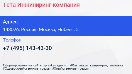 Тета-Инжиниринг, компания по адресу 143026, Россия, Москва, Нобеля, 5 в дальнейшем Организация, размещена в следующих категориях: