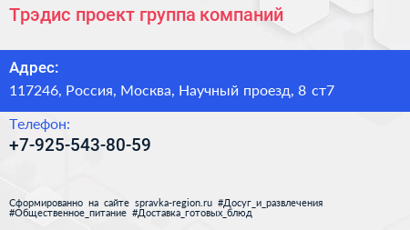 Трэдис проект, группа компаний по адресу 117246, Россия, Москва, Научный проезд, 8 ст7 в дальнейшем Организация, размещена в следующих категориях: