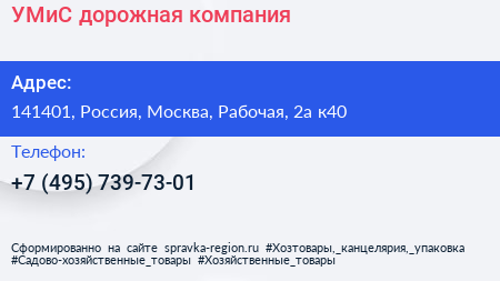 УМиС, дорожная компания по адресу 141401, Россия, Москва, Рабочая, 2а к40 в дальнейшем Организация, размещена в следующих категориях: