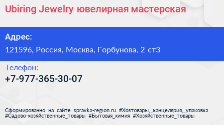 Ubiring Jewelry, ювелирная мастерская по адресу 121596, Россия, Москва, Горбунова, 2 ст3 в дальнейшем Организация, размещена в следующих категориях: