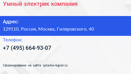 Умный электрик, компания по адресу 129110, Россия, Москва, Гиляровского, 40 в дальнейшем Организация, размещена в следующих категориях: