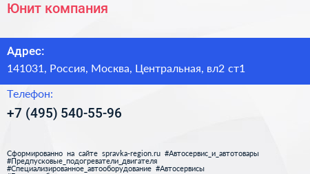 Юнит, компания по адресу 141031, Россия, Москва, Центральная, вл2 ст1 в дальнейшем Организация, размещена в следующих категориях: