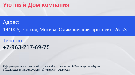Уютный Дом, компания по адресу 141006, Россия, Москва, Олимпийский проспект, 26 к3 в дальнейшем Организация, размещена в следующих категориях: