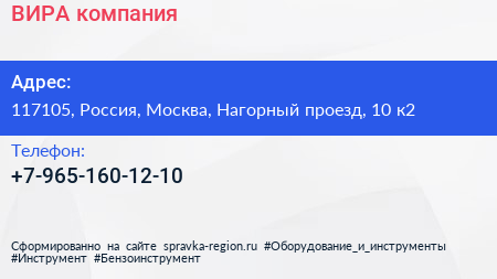 ВИРА, компания по адресу 117105, Россия, Москва, Нагорный проезд, 10 к2 в дальнейшем Организация, размещена в следующих категориях: