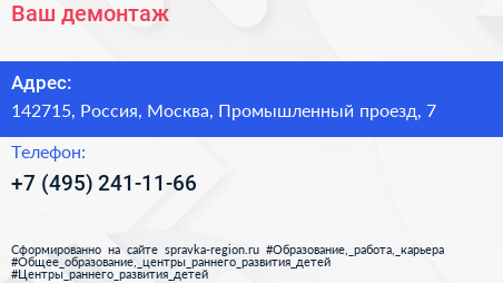 Ваш демонтаж по адресу 142715, Россия, Москва, Промышленный проезд, 7 в дальнейшем Организация, размещена в следующих категориях: