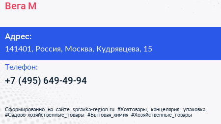 Вега-М по адресу 141401, Россия, Москва, Кудрявцева, 15 в дальнейшем Организация, размещена в следующих категориях: