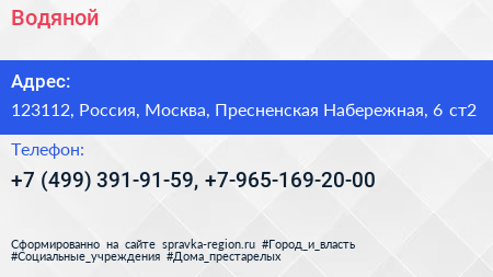 Водяной по адресу 123112, Россия, Москва, Пресненская Набережная, 6 ст2 в дальнейшем Организация, размещена в следующих категориях:
