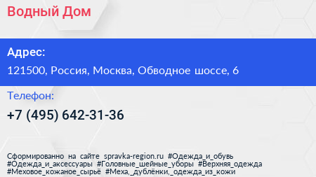 Водный Дом по адресу 121500, Россия, Москва, Обводное шоссе, 6 в дальнейшем Организация, размещена в следующих категориях: