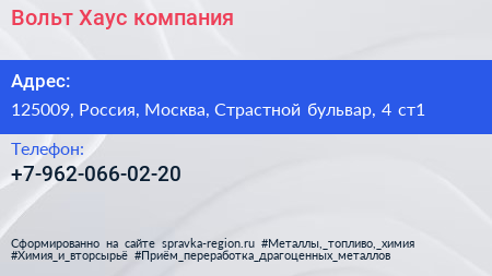 Вольт Хаус, компания по адресу 125009, Россия, Москва, Страстной бульвар, 4 ст1 в дальнейшем Организация, размещена в следующих категориях: