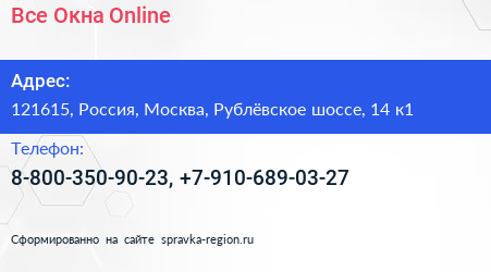 Все Окна Online по адресу 121615, Россия, Москва, Рублёвское шоссе, 14 к1 в дальнейшем Организация, размещена в следующих категориях: