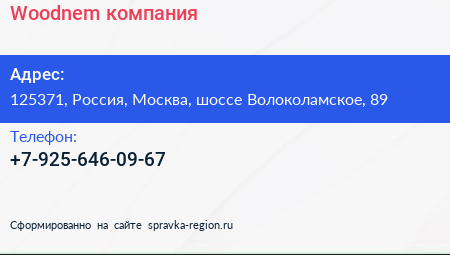 Woodnem, компания по адресу 125371, Россия, Москва, шоссе Волоколамское, 89 в дальнейшем Организация, размещена в следующих категориях: