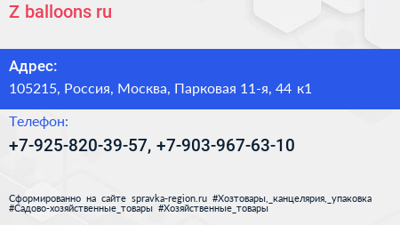 Z-balloons.ru по адресу 105215, Россия, Москва, Парковая 11-я, 44 к1 в дальнейшем Организация, размещена в следующих категориях: