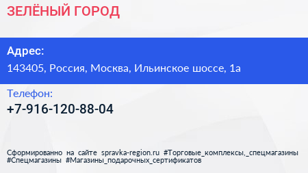 ЗЕЛЁНЫЙ ГОРОД по адресу 143405, Россия, Москва, Ильинское шоссе, 1а в дальнейшем Организация, размещена в следующих категориях: