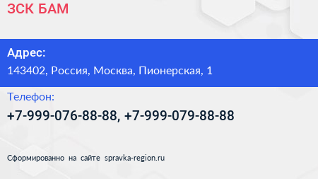 ЗСК БАМ по адресу 143402, Россия, Москва, Пионерская, 1 в дальнейшем Организация, размещена в следующих категориях: