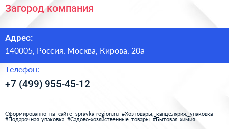 Загород, компания по адресу 140005, Россия, Москва, Кирова, 20а в дальнейшем Организация, размещена в следующих категориях: