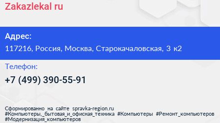 Zakazlekal.ru по адресу 117216, Россия, Москва, Старокачаловская, 3 к2 в дальнейшем Организация, размещена в следующих категориях: