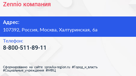 Zennio, компания по адресу 107392, Россия, Москва, Халтуринская, 6а в дальнейшем Организация, размещена в следующих категориях: