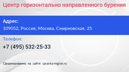 Центр горизонтально-направленного бурения по адресу 109052, Россия, Москва, Смирновская, 25 в дальнейшем Организация, размещена в следующих категориях: