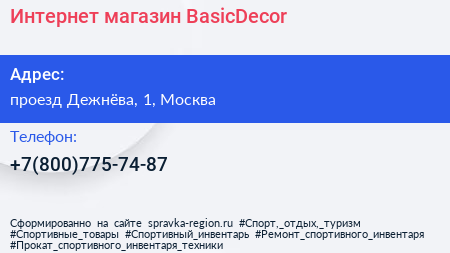 Интернет-магазин BasicDecor по адресу проезд Дежнёва, 1, Москва в дальнейшем Организация, размещена в следующих категориях: