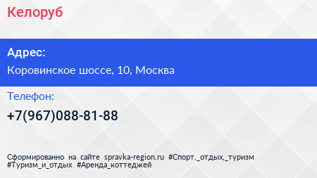 Келоруб по адресу Коровинское шоссе, 10, Москва в дальнейшем Организация, размещена в следующих категориях: