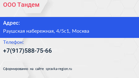 ООО Тандем по адресу Раушская набережная, 4/5с1, Москва в дальнейшем Организация, размещена в следующих категориях: