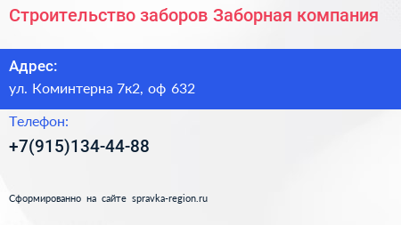 Строительство заборов «Заборная компания» по адресу ул. Коминтерна 7к2, оф 632 в дальнейшем Организация, размещена в следующих категориях: