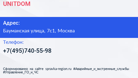 UNITDOM по адресу Бауманская улица, 7с1, Москва в дальнейшем Организация, размещена в следующих категориях: