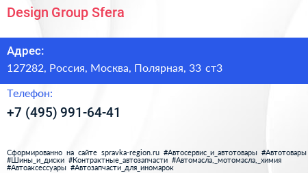 Design Group Sfera по адресу 127282, Россия, Москва, Полярная, 33 ст3 в дальнейшем Организация, размещена в следующих категориях: