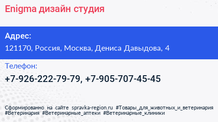 Enigma, дизайн-студия по адресу 121170, Россия, Москва, Дениса Давыдова, 4 в дальнейшем Организация, размещена в следующих категориях: