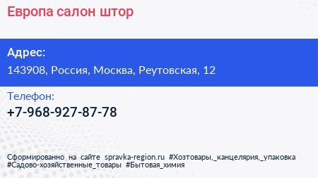 Европа, салон штор по адресу 143908, Россия, Москва, Реутовская, 12 в дальнейшем Организация, размещена в следующих категориях: