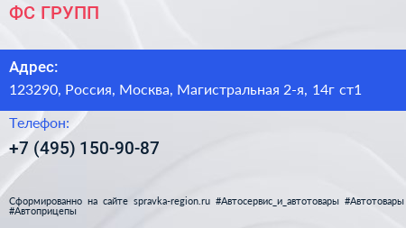 ФС-ГРУПП по адресу 123290, Россия, Москва, Магистральная 2-я, 14г ст1 в дальнейшем Организация, размещена в следующих категориях: