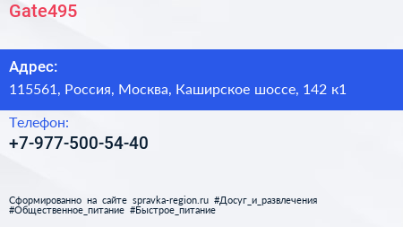 Gate495 по адресу 115561, Россия, Москва, Каширское шоссе, 142 к1 в дальнейшем Организация, размещена в следующих категориях: