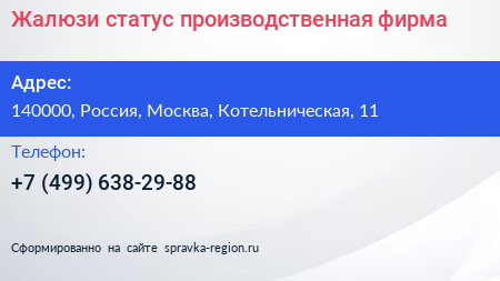 Жалюзи статус, производственная фирма по адресу 140000, Россия, Москва, Котельническая, 11 в дальнейшем Организация, размещена в следующих категориях:
