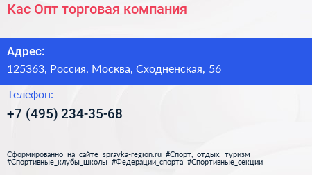 Кас-Опт, торговая компания по адресу 125363, Россия, Москва, Сходненская, 56 в дальнейшем Организация, размещена в следующих категориях: