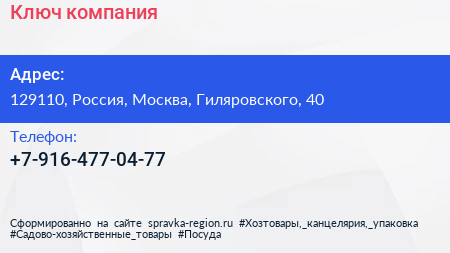 Ключ, компания по адресу 129110, Россия, Москва, Гиляровского, 40 в дальнейшем Организация, размещена в следующих категориях: