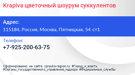 Krapiva, цветочный шоурум суккулентов по адресу 115184, Россия, Москва, Пятницкая, 54 ст1 в дальнейшем Организация, размещена в следующих категориях: