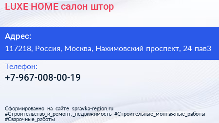 LUXE HOME, салон штор по адресу 117218, Россия, Москва, Нахимовский проспект, 24 пав3 в дальнейшем Организация, размещена в следующих категориях: