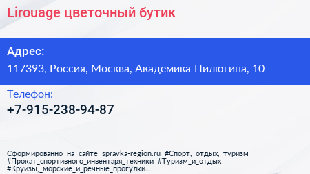 Lirouage, цветочный бутик по адресу 117393, Россия, Москва, Академика Пилюгина, 10 в дальнейшем Организация, размещена в следующих категориях: