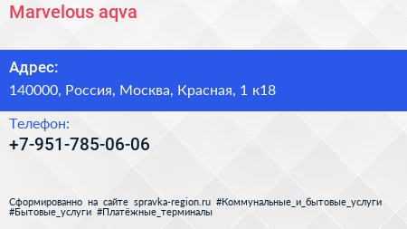 Marvelous-aqva по адресу 140000, Россия, Москва, Красная, 1 к18 в дальнейшем Организация, размещена в следующих категориях: