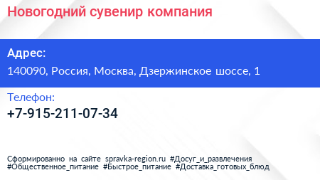 Новогодний сувенир, компания по адресу 140090, Россия, Москва, Дзержинское шоссе, 1 в дальнейшем Организация, размещена в следующих категориях: