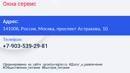 Окна-сервис по адресу 141008, Россия, Москва, проспект Астрахова, 10 в дальнейшем Организация, размещена в следующих категориях: