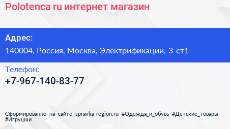Polotenca.ru, интернет-магазин по адресу 140004, Россия, Москва, Электрификации, 3 ст1 в дальнейшем Организация, размещена в следующих категориях: