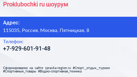 Proklubochki.ru, шоурум по адресу 115035, Россия, Москва, Пятницкая, 8 в дальнейшем Организация, размещена в следующих категориях: