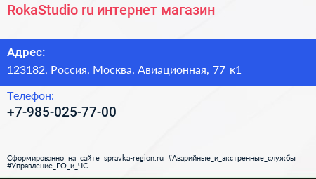 RokaStudio.ru, интернет-магазин по адресу 123182, Россия, Москва, Авиационная, 77 к1 в дальнейшем Организация, размещена в следующих категориях: