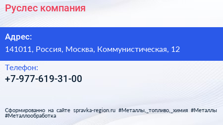 Руслес, компания по адресу 141011, Россия, Москва, Коммунистическая, 12 в дальнейшем Организация, размещена в следующих категориях: