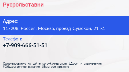 Русрольставни по адресу 117208, Россия, Москва, проезд Сумской, 21 к1 в дальнейшем Организация, размещена в следующих категориях: